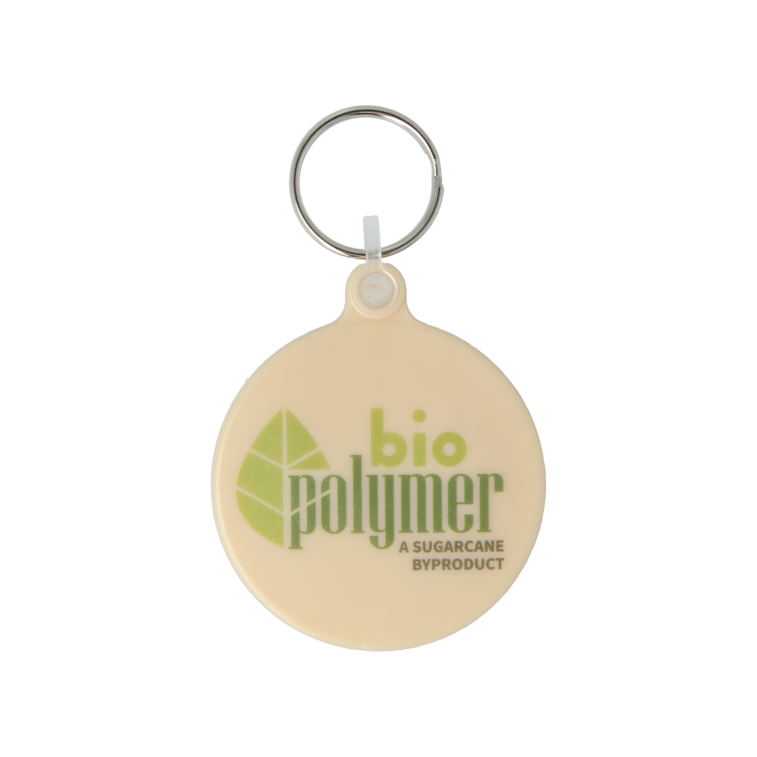 This larger format circular keyring offers increased branding space whilst maintaining the popular round design. Supplied with both split ring and jump ring fittings for secure attachment, the durable recycled plastic construction provides excellent promotional value.