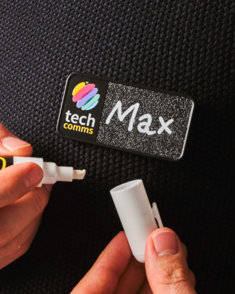 > Use a chalk pen, easy to write name on and remove (available to purchase separately)