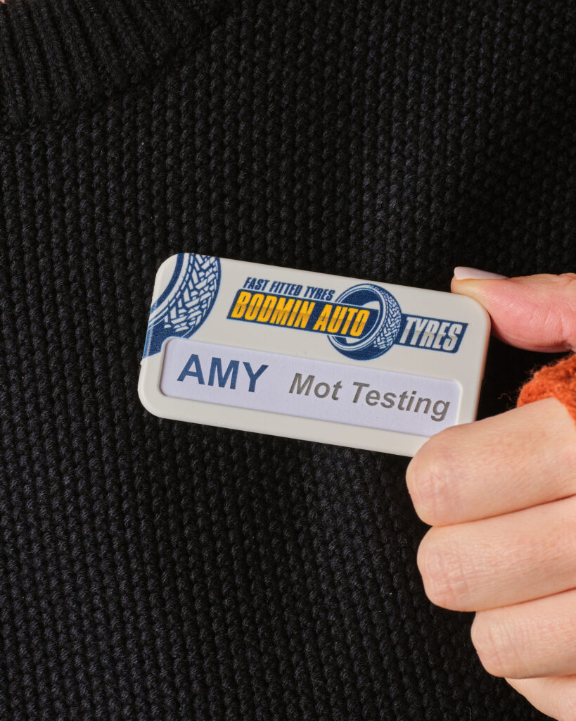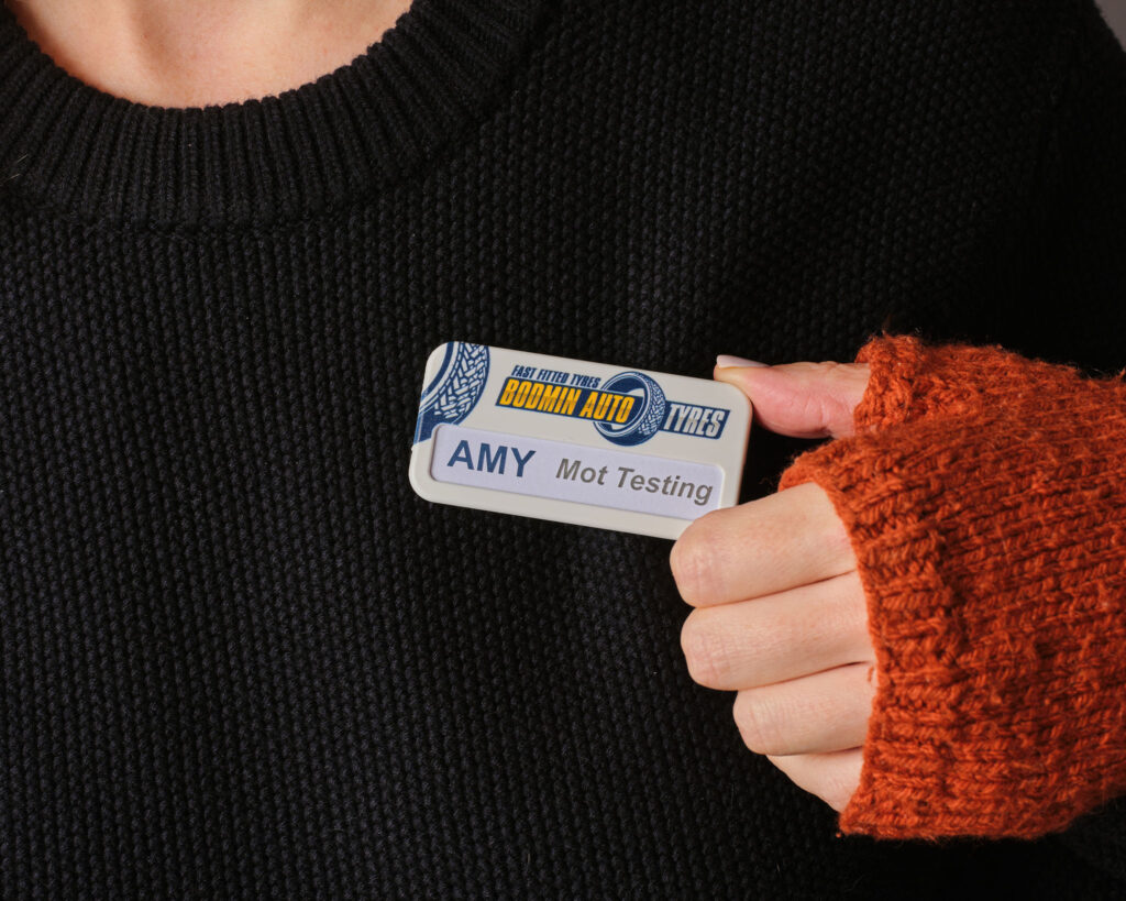 To create your own personalised inserts; follow the link here to download the templates which you can then complete with your names on your computer and then print on your office printer, cut out and slide into the window on the badges.