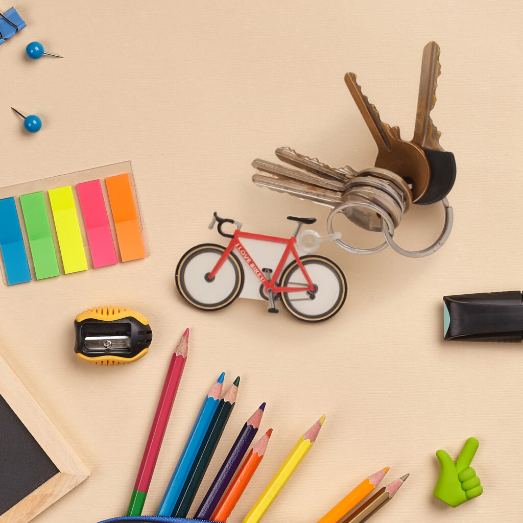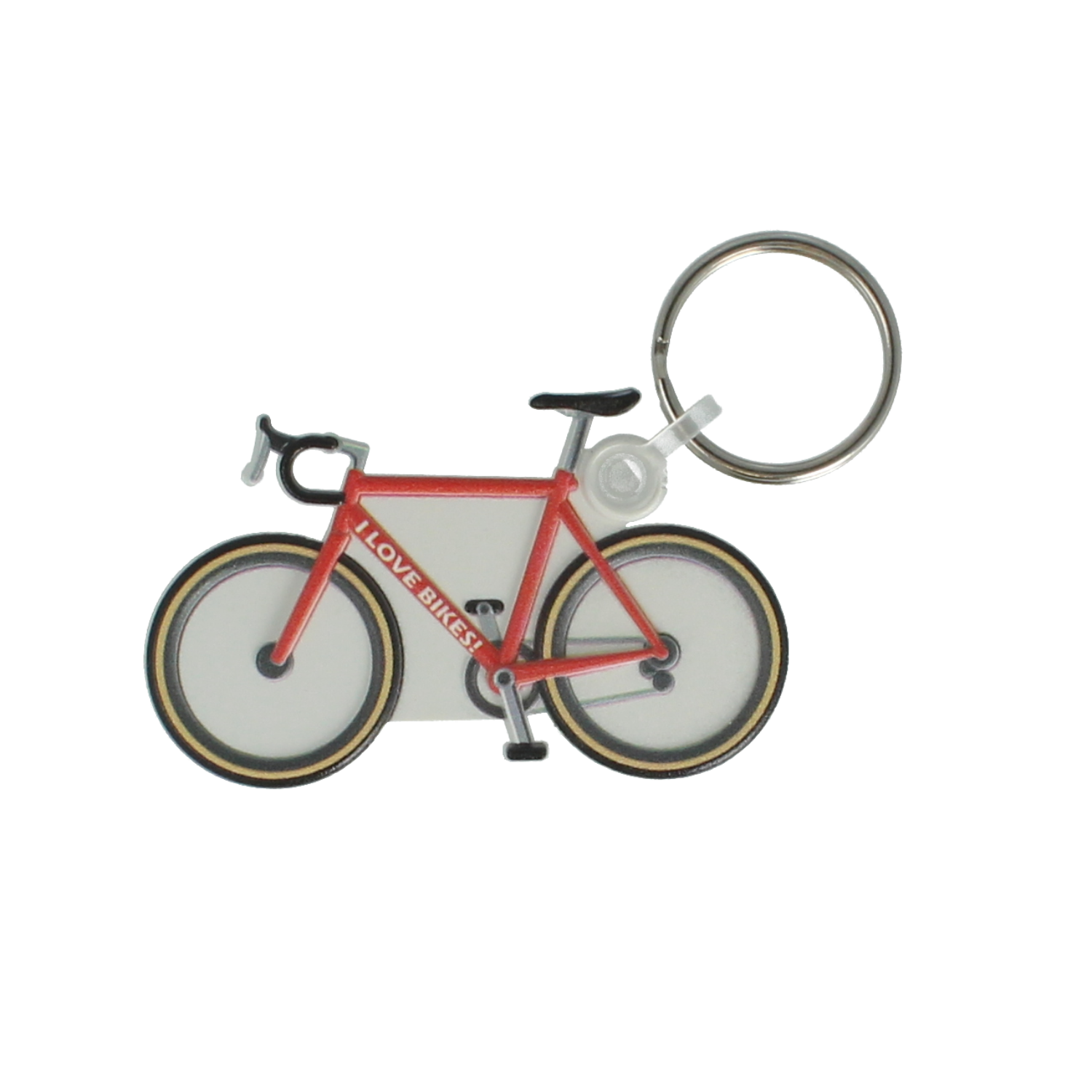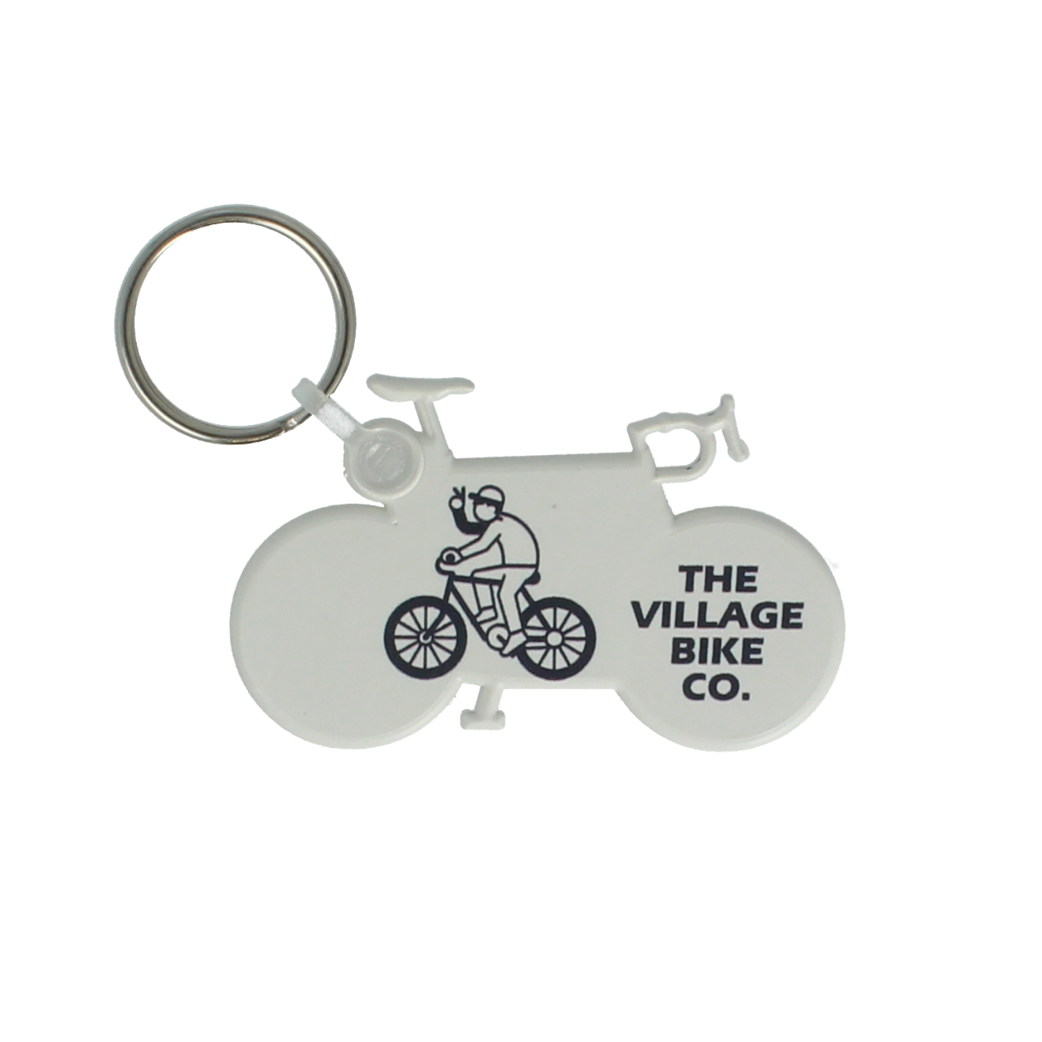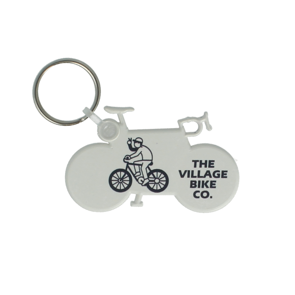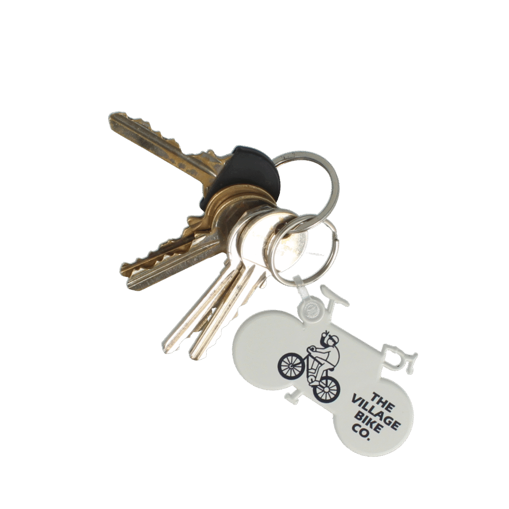 Our bike shaped ‘funkey’ keyring, made in the UK from recycled plastic or recycled R+ which has a speckled appearance.