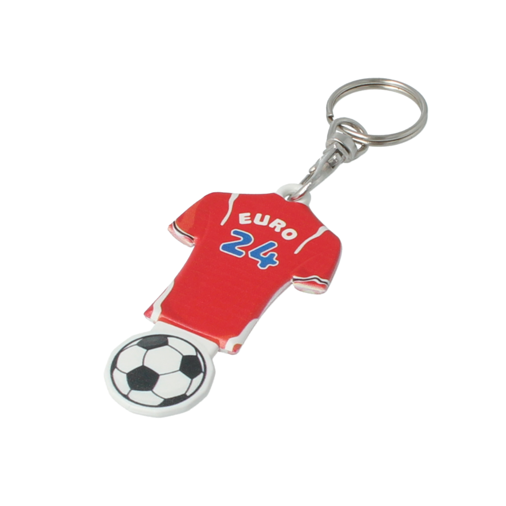 This fun and useful product can showcase your teams club shirt or can be used to show your support for any football tournament. It’s never too early to kick-off your support with the trolley stick keyring, designed with football shaped trolley coin at one end.