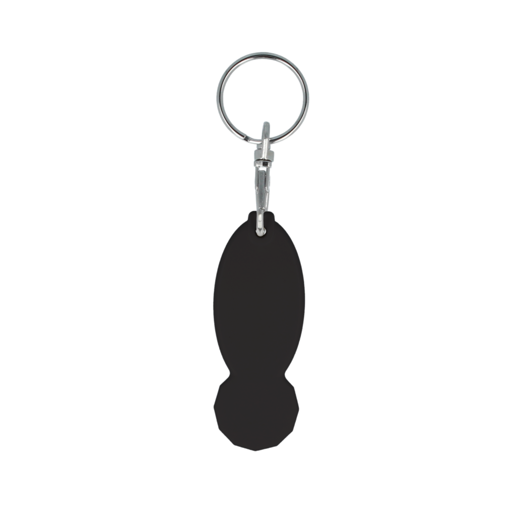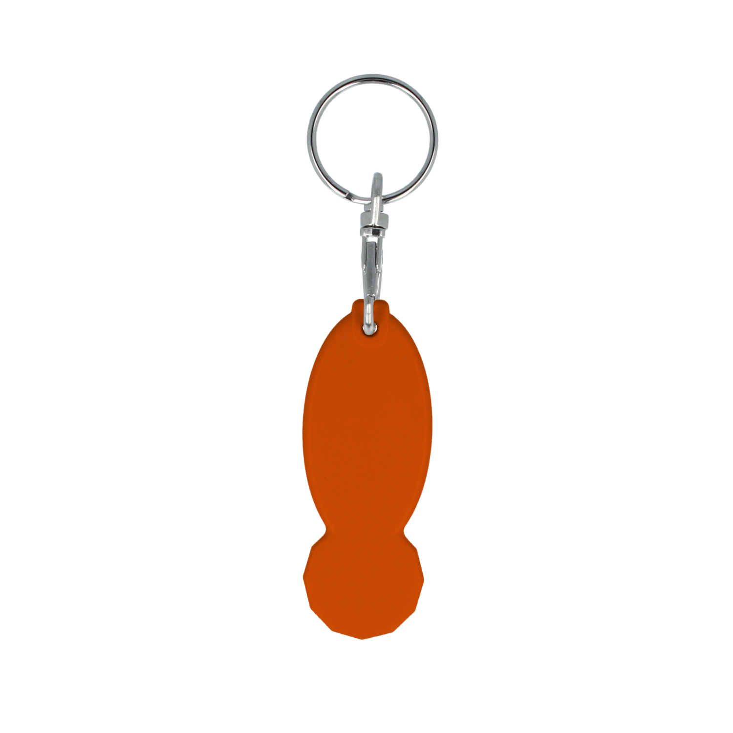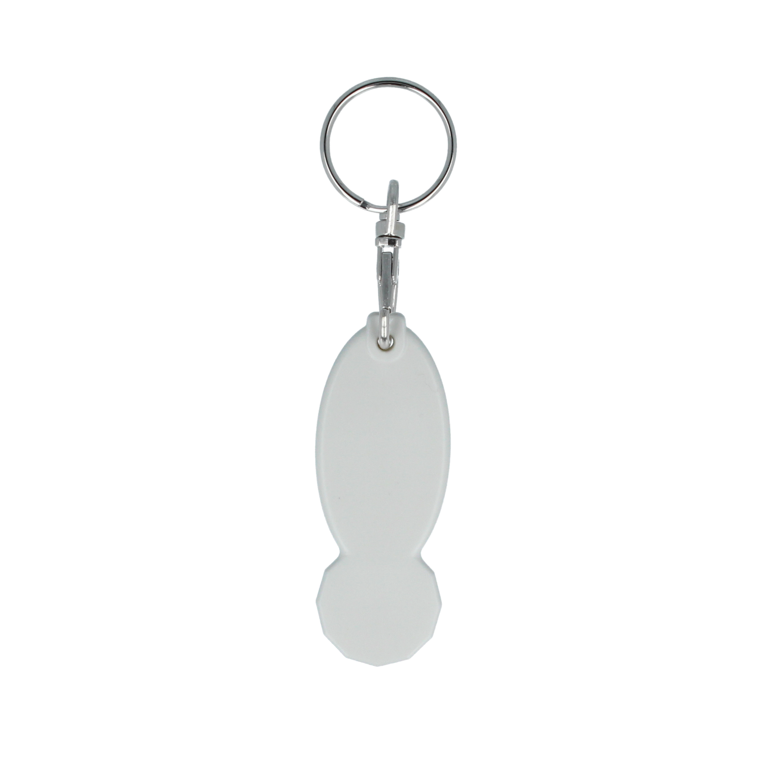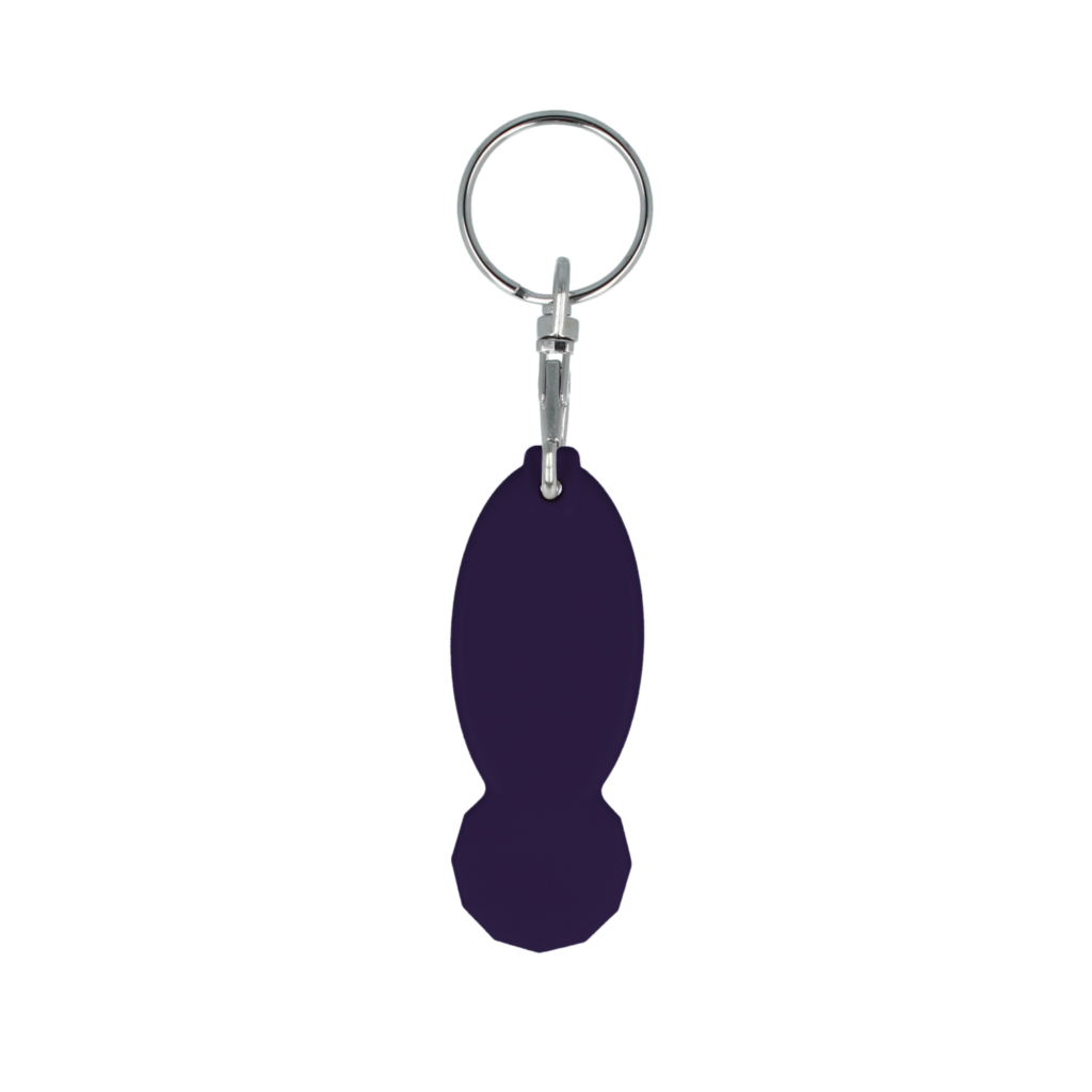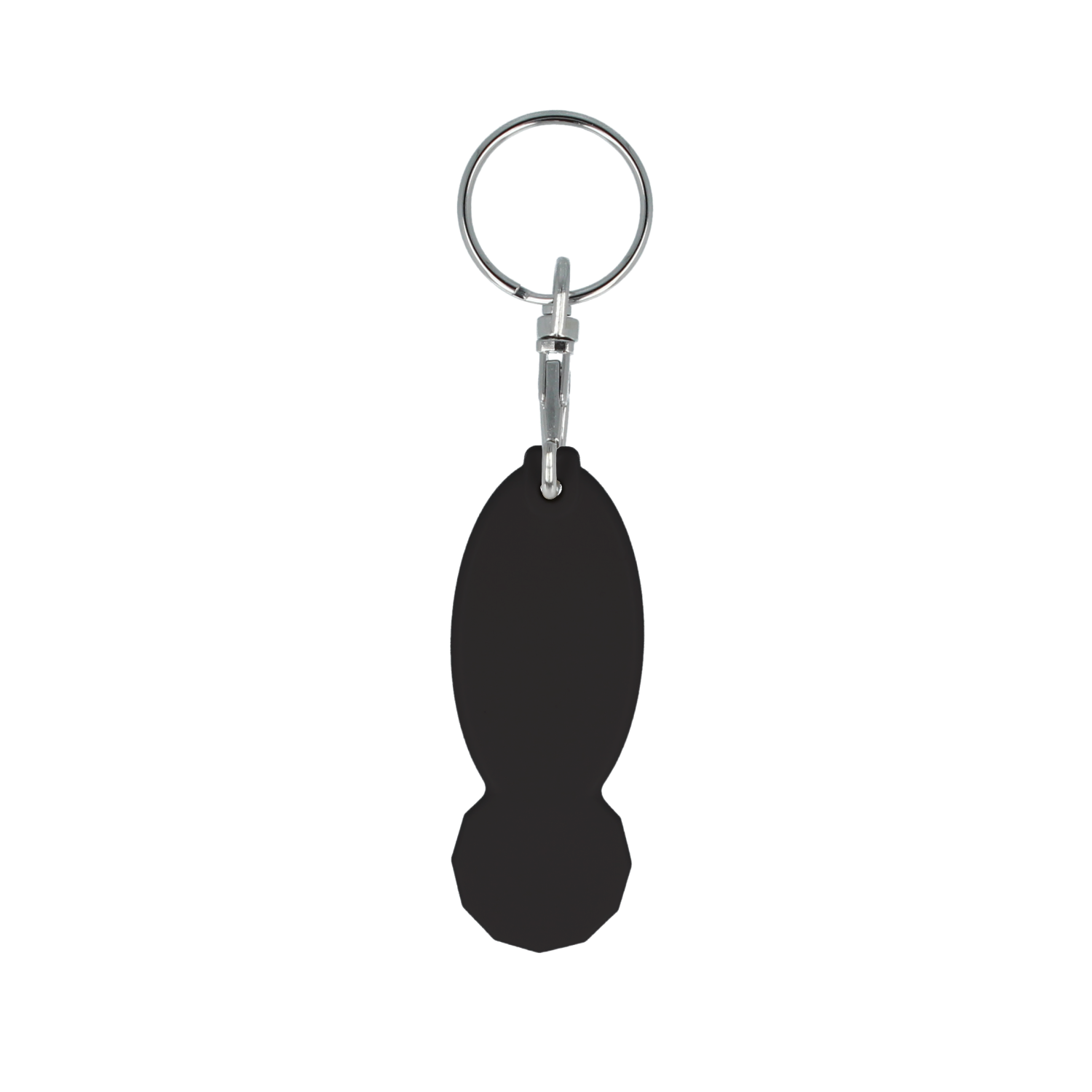 This oval trolley coin is designed with a 3D shape, has 12 sides to replicate a 1 Pound coin at one end and comes with a lobster clip fitting. A larger branding area allows artwork on one or both sides.