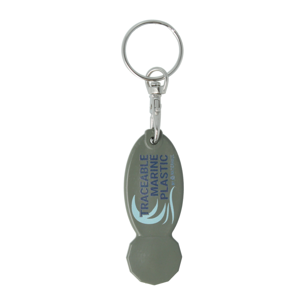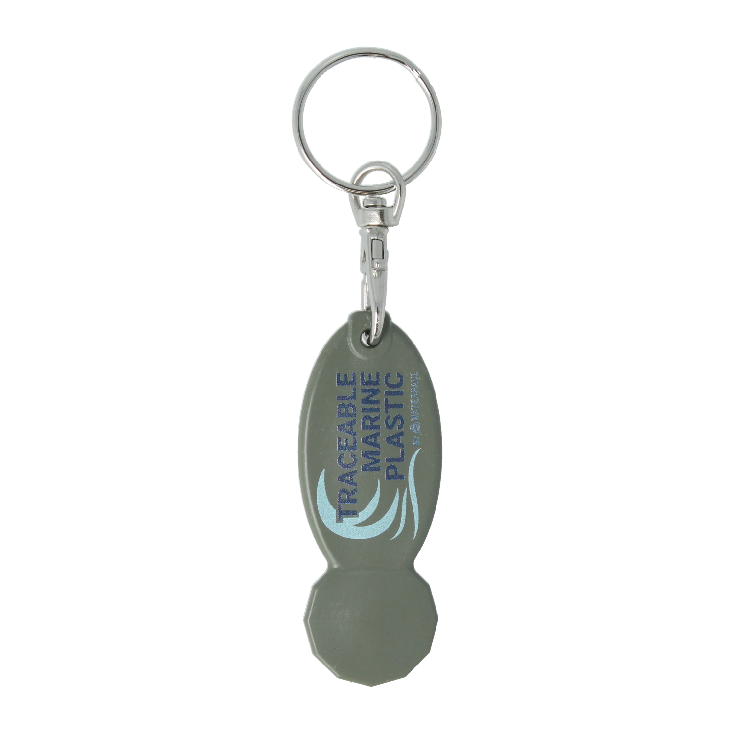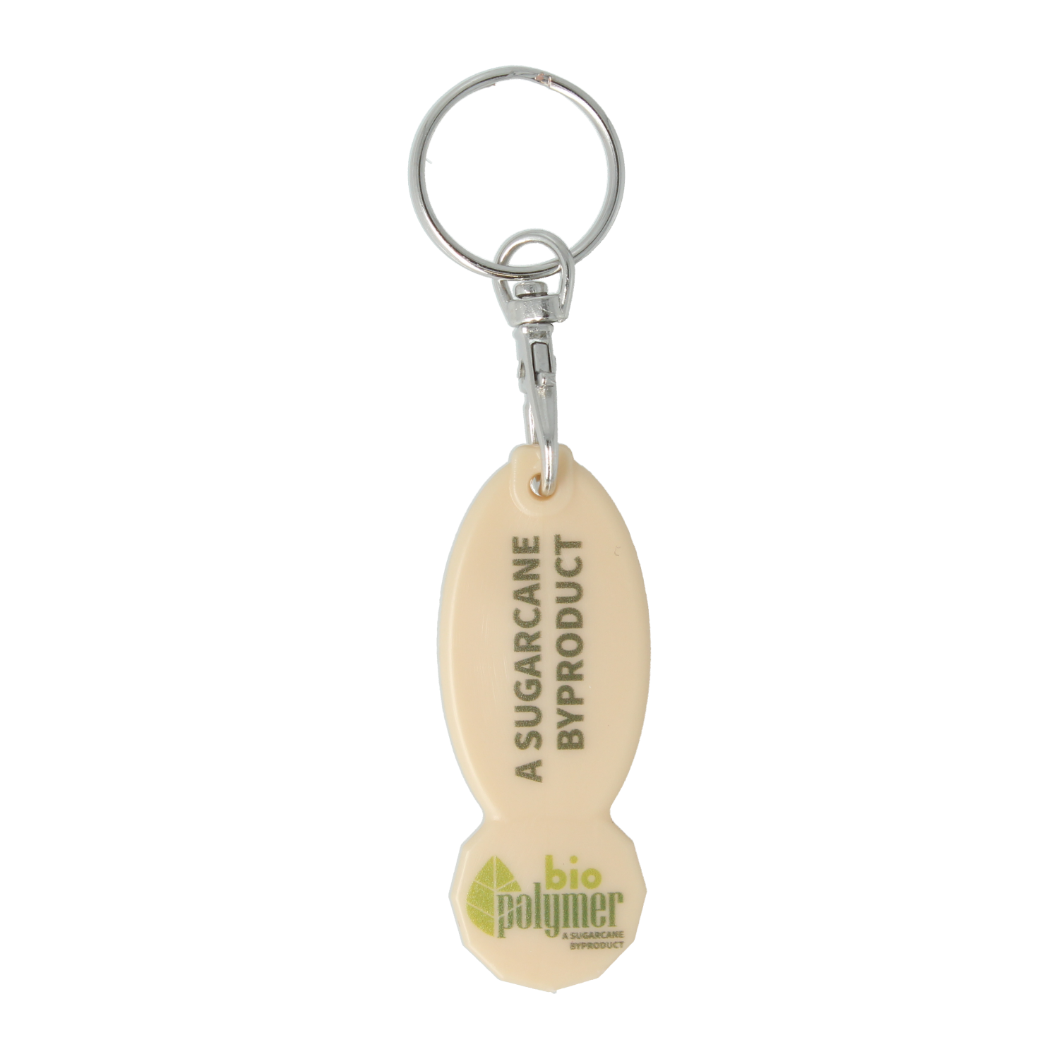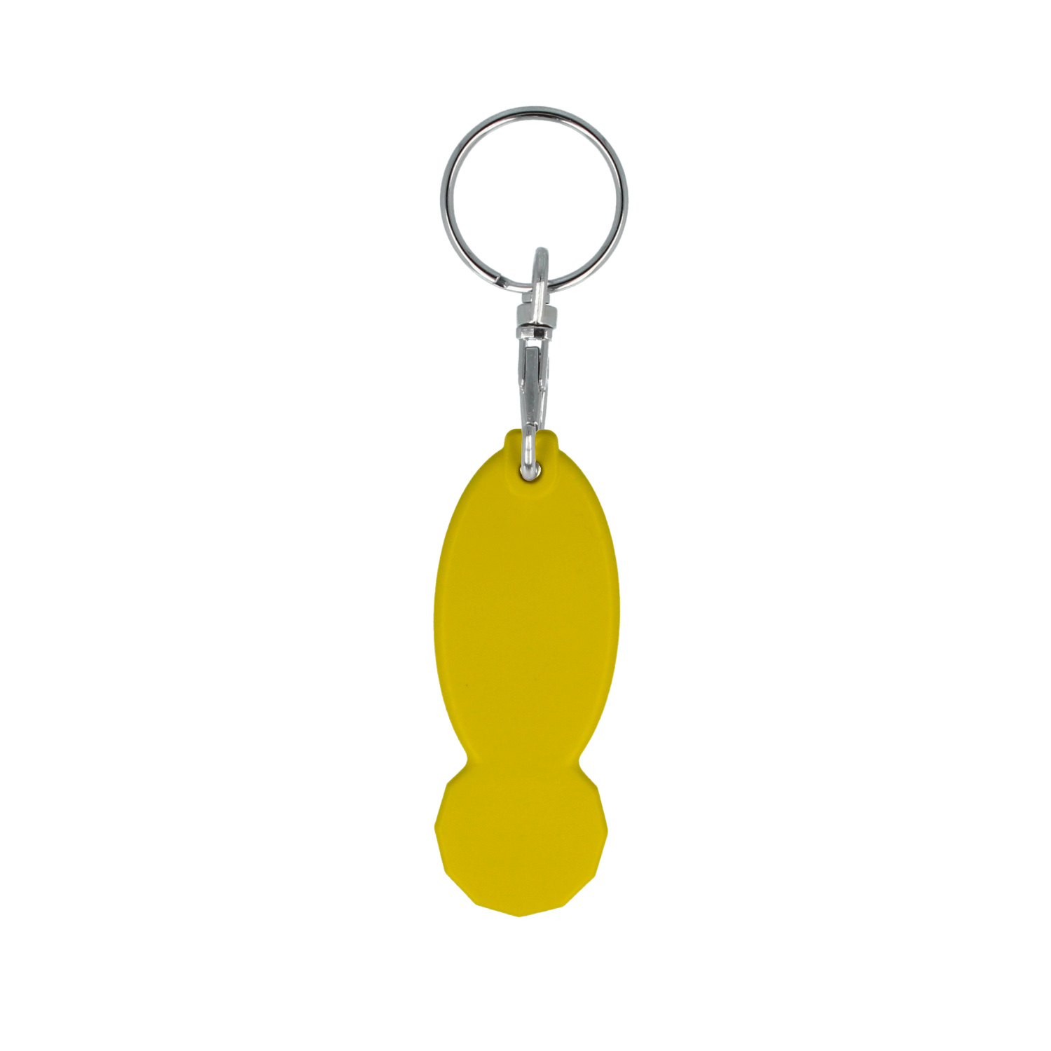 This oval trolley coin is designed with a 3D shape, has 12 sides to replicate a 1 Pound coin at one end and comes with a lobster clip fitting. A larger branding area allows artwork on one or both sides.