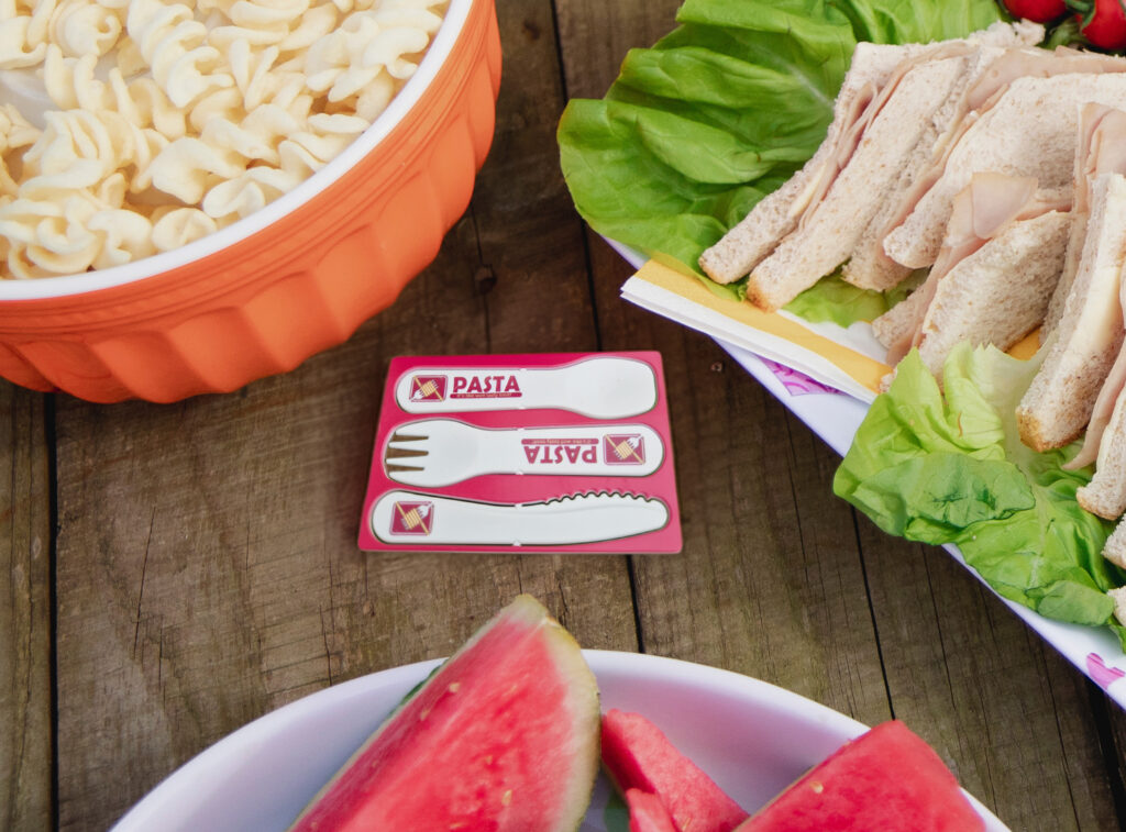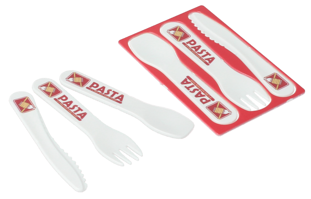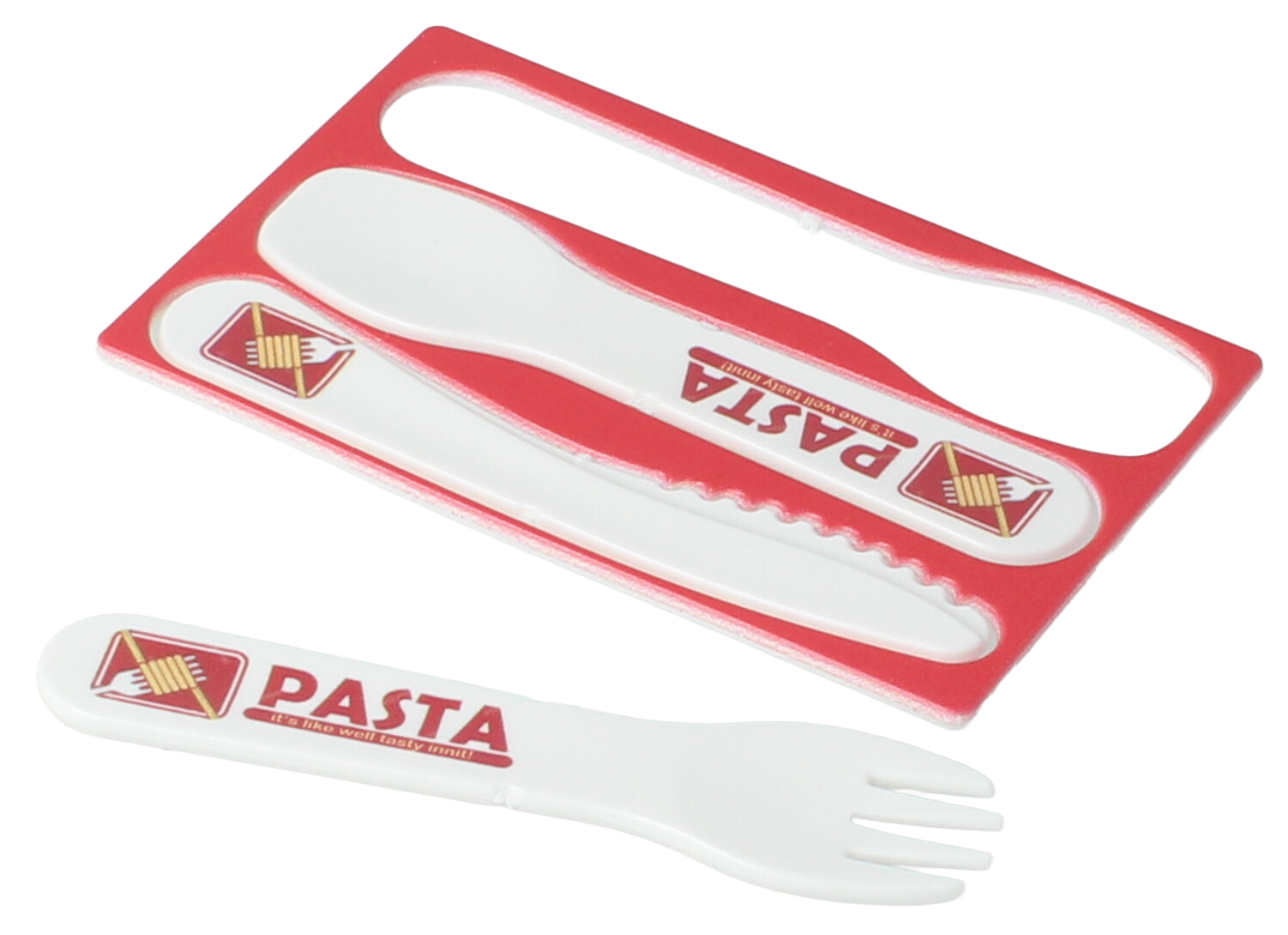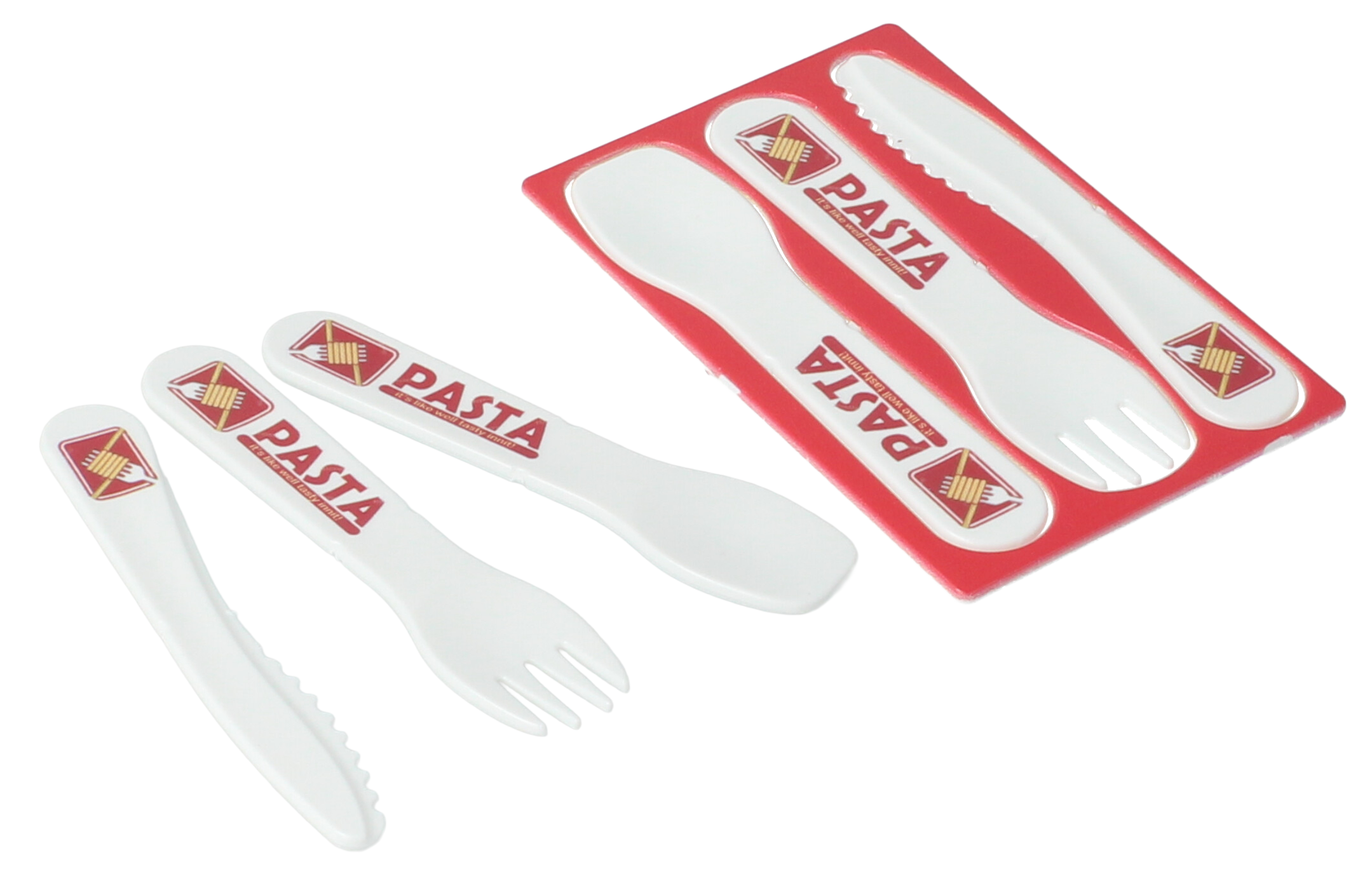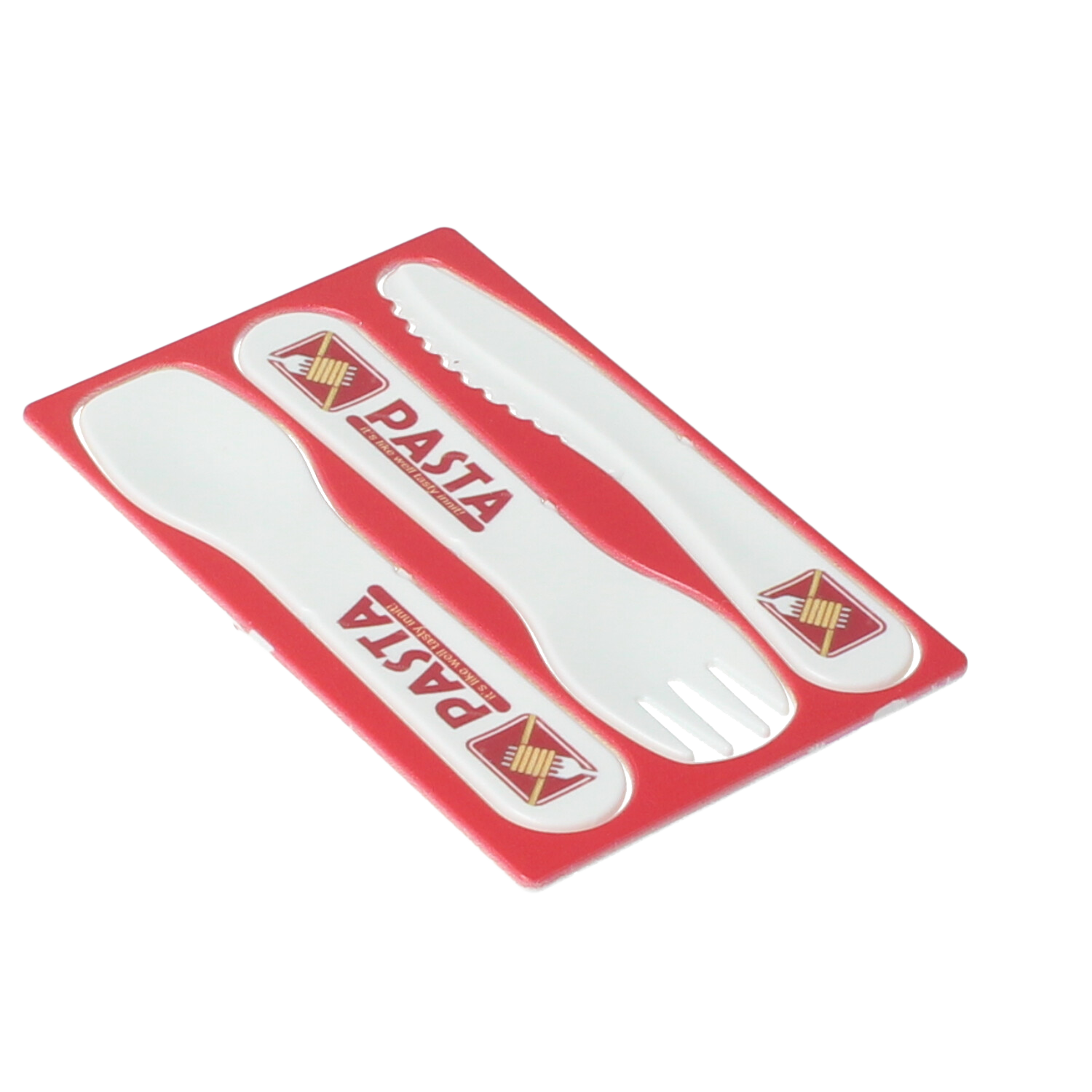 The ultimate promotional gift idea for food festivals, corporate events, outdoor dining venues, and takeaway promotions. This innovative product combines a knife, fork and spoon in a sleek, compact design that fits perfectly in your wallet, bag, glove compartment or desk drawer for convenient portability. Using proper cutlery enhances the dining experience whilst showing consideration for the environment by reducing single-use plastic waste. The large branding area makes this cutlery set perfect for restaurant promotions, corporate hospitality gifts, food truck giveaways, and event merchandise.