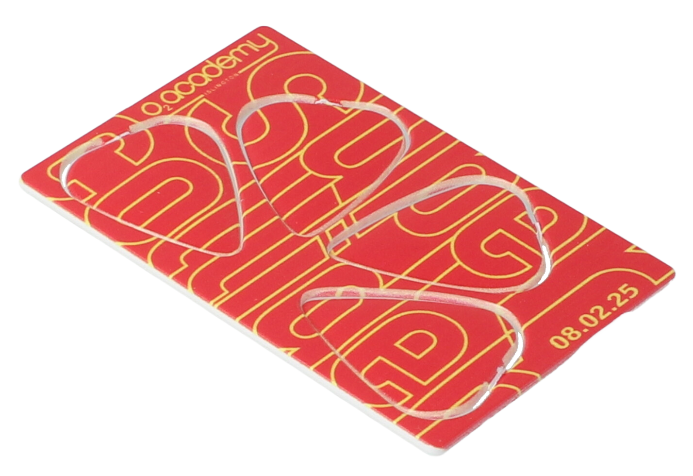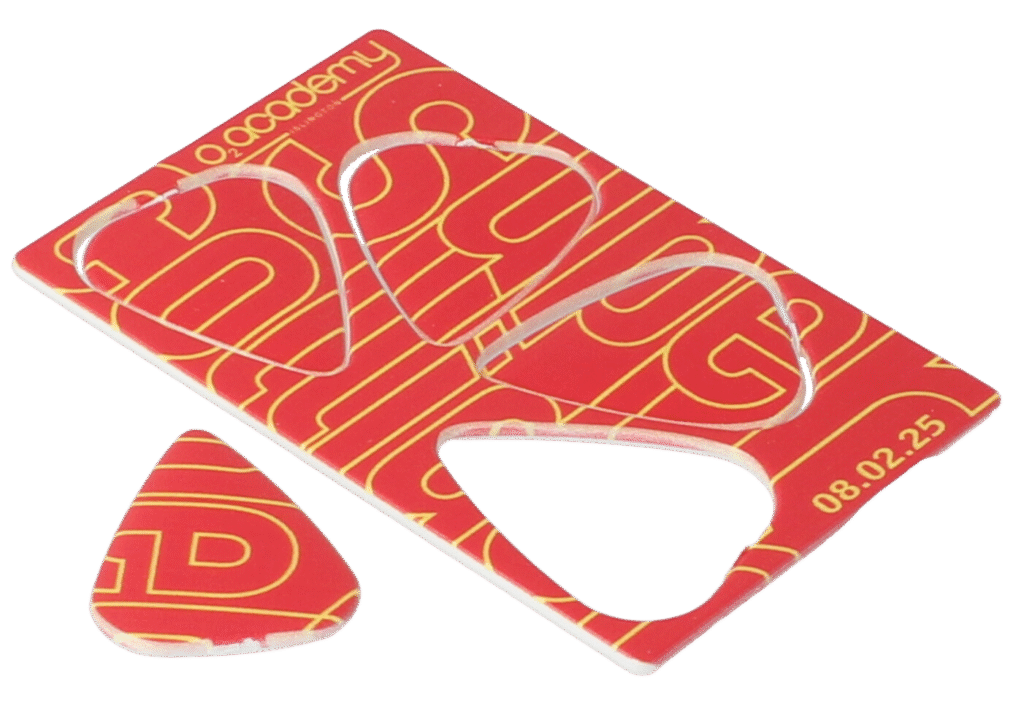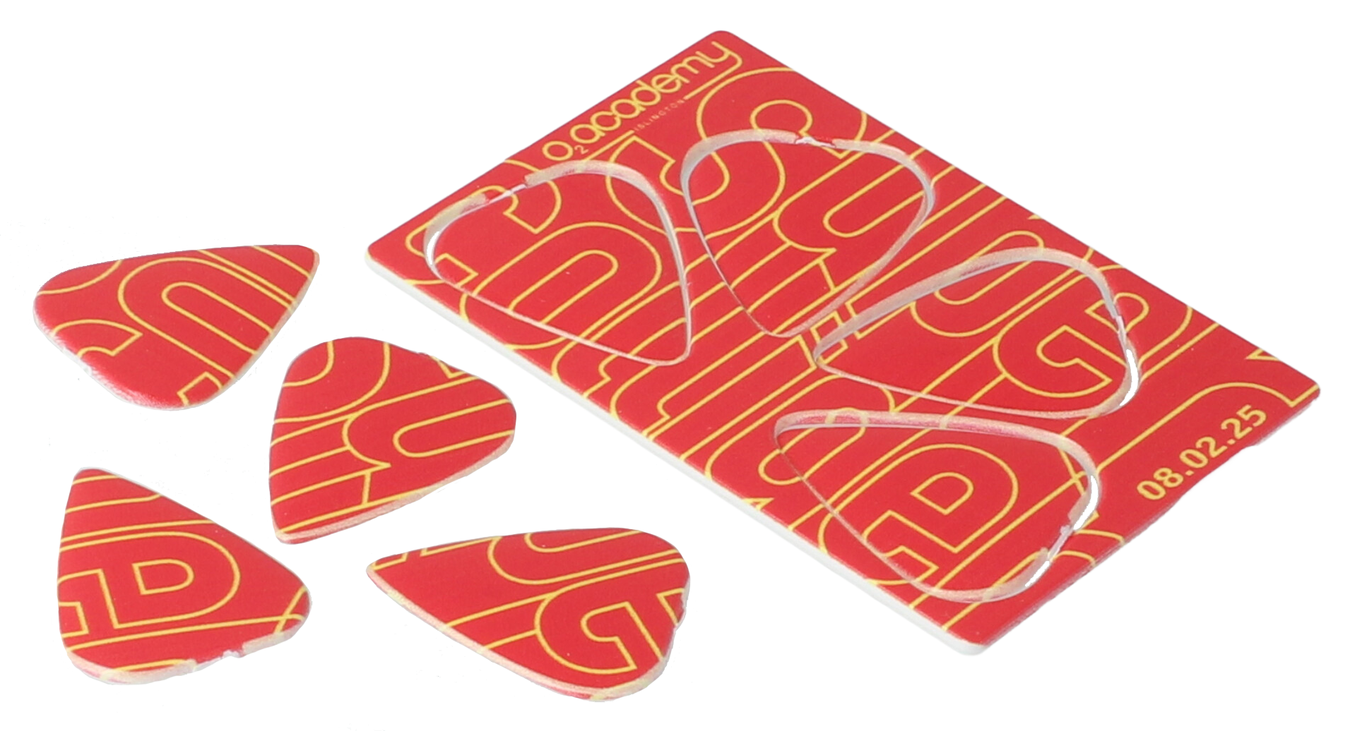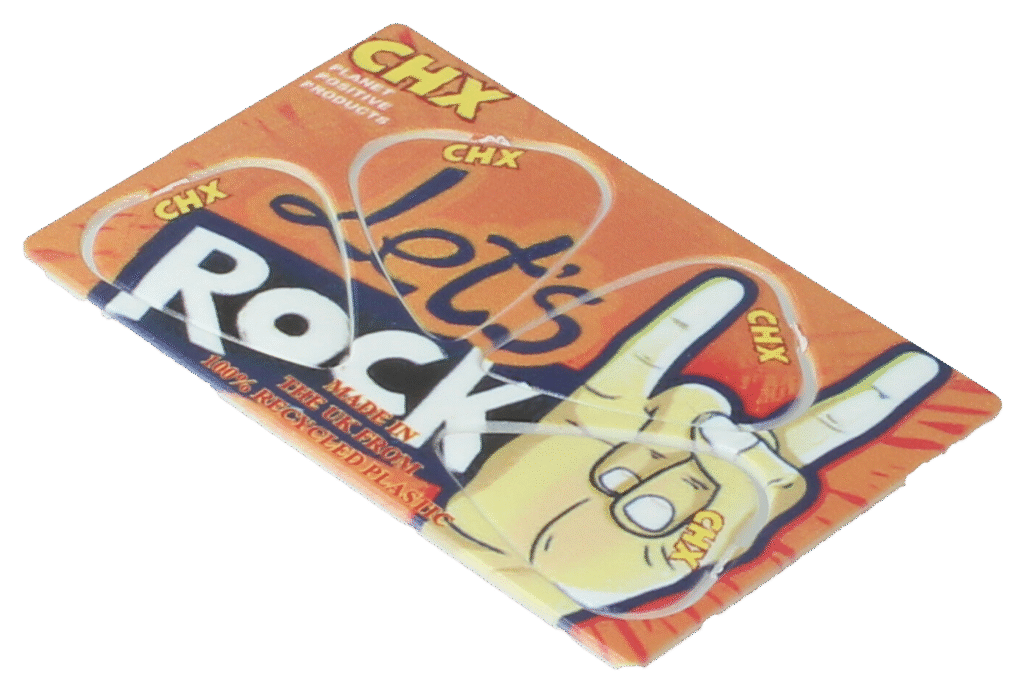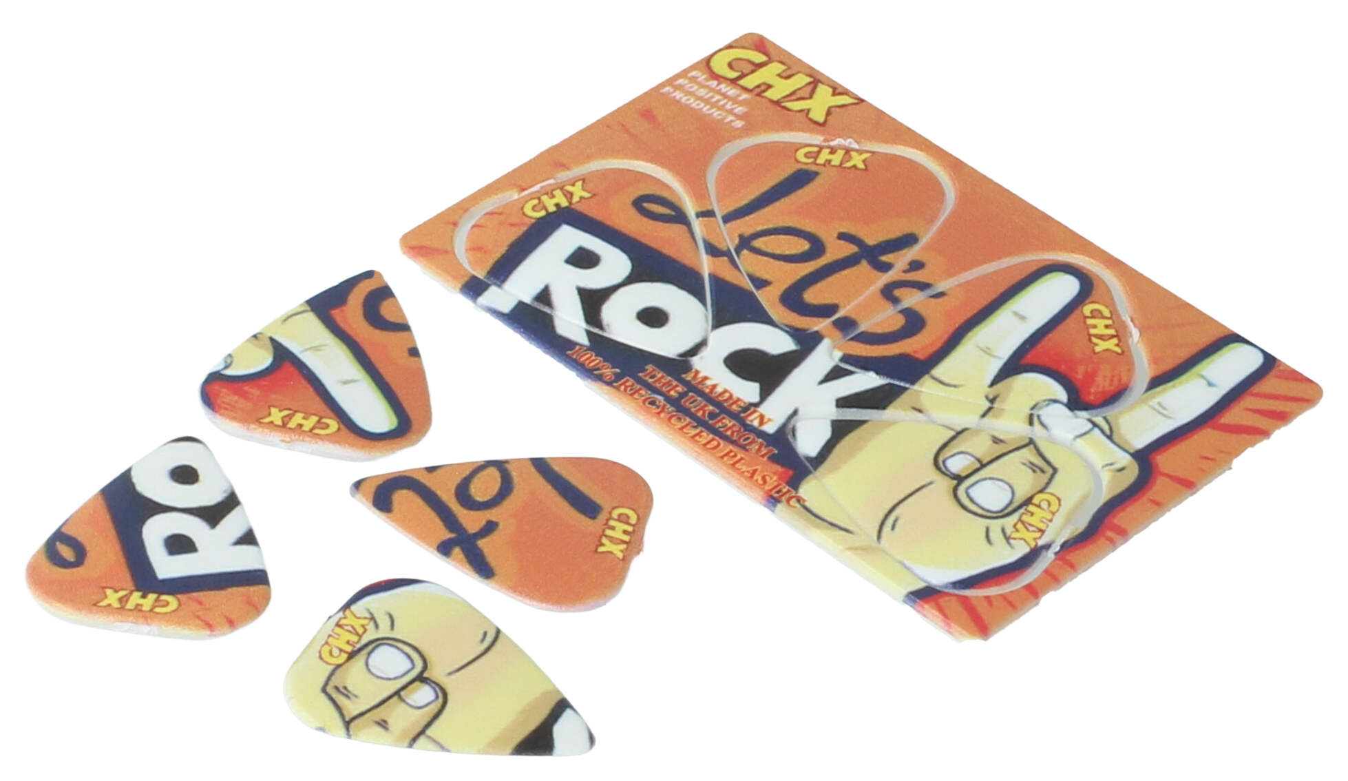 The ultimate promotional gift idea for guitar enthusiasts, retailers, specialist music shops and bands. This innovative product features 4 plectrums housed in a credit card sized holder that fits perfectly in your wallet for convenient portability. The plectrums are designed for playing comfort, and perfect for both strumming and single note riffing. This accessory is perfect for any guitar lover who wants to keep their picks close at hand wherever they go.