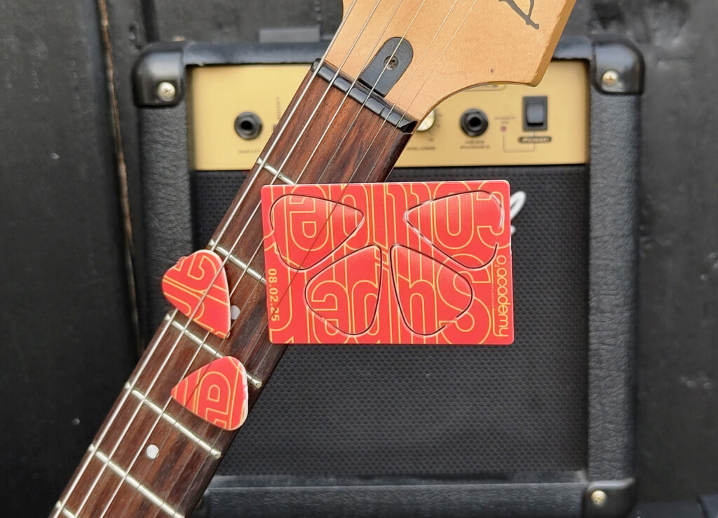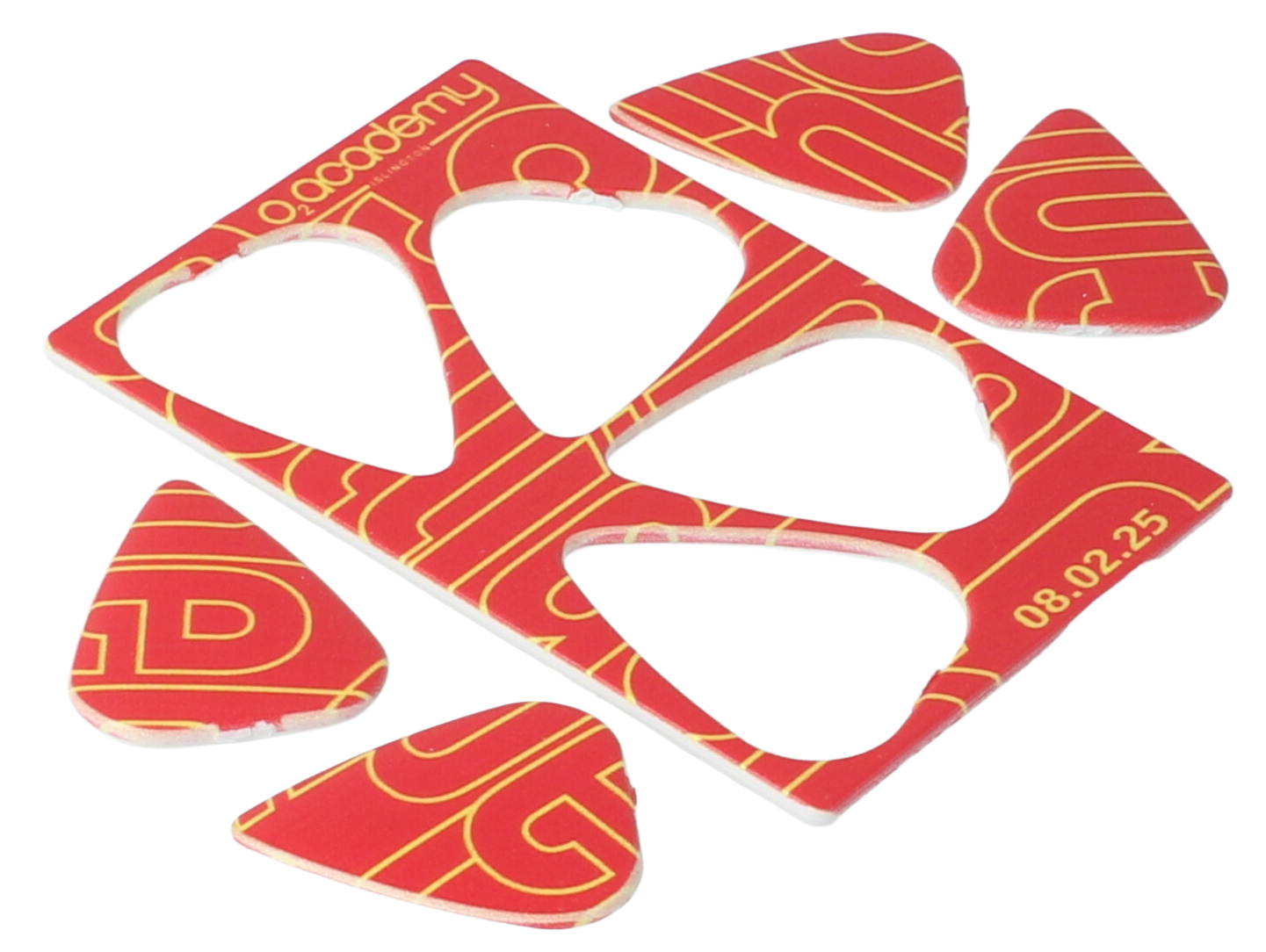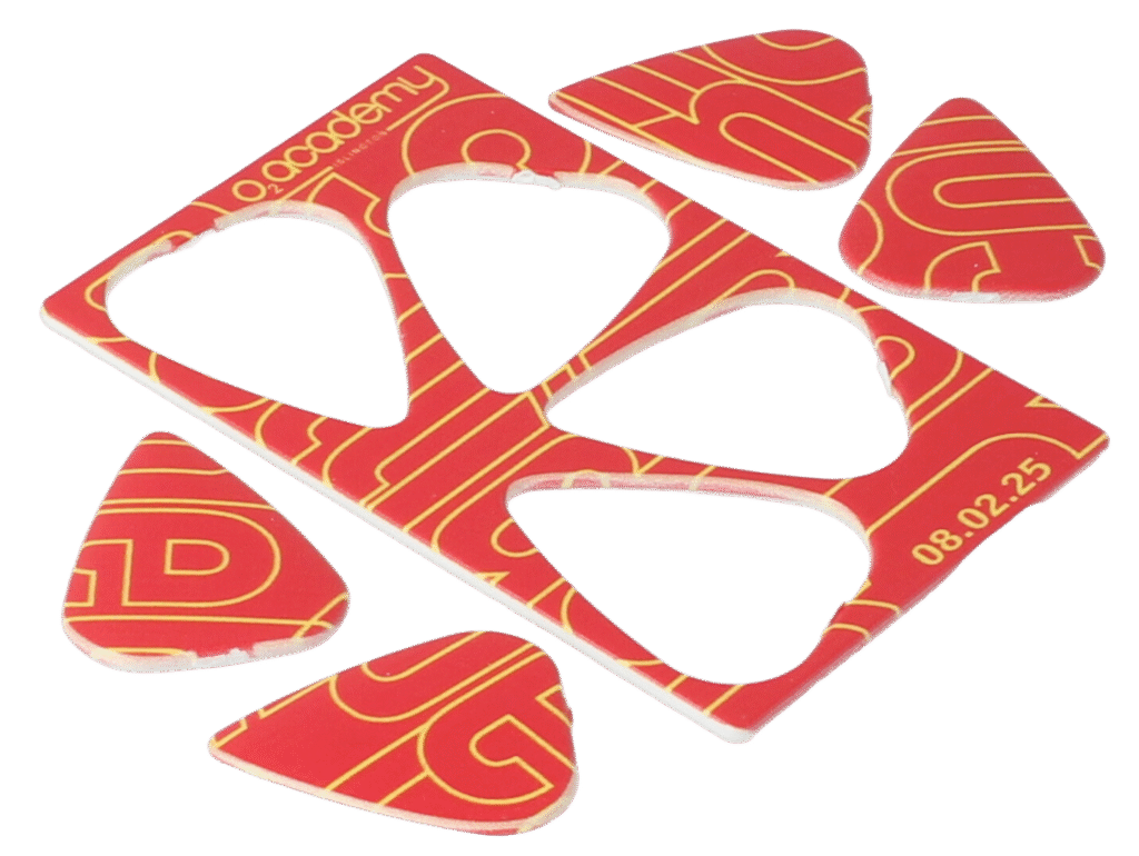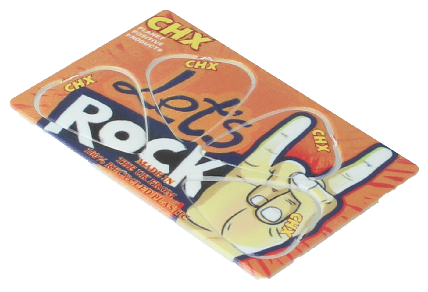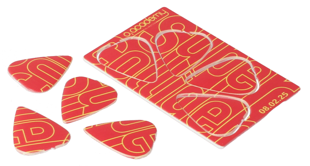 The ultimate promotional gift idea for guitar enthusiasts, retailers, specialist music shops and bands. This innovative product features 4 plectrums housed in a credit card sized holder that fits perfectly in your wallet for convenient portability. The plectrums are designed for playing comfort, and perfect for both strumming and single note riffing. This accessory is perfect for any guitar lover who wants to keep their picks close at hand wherever they go.